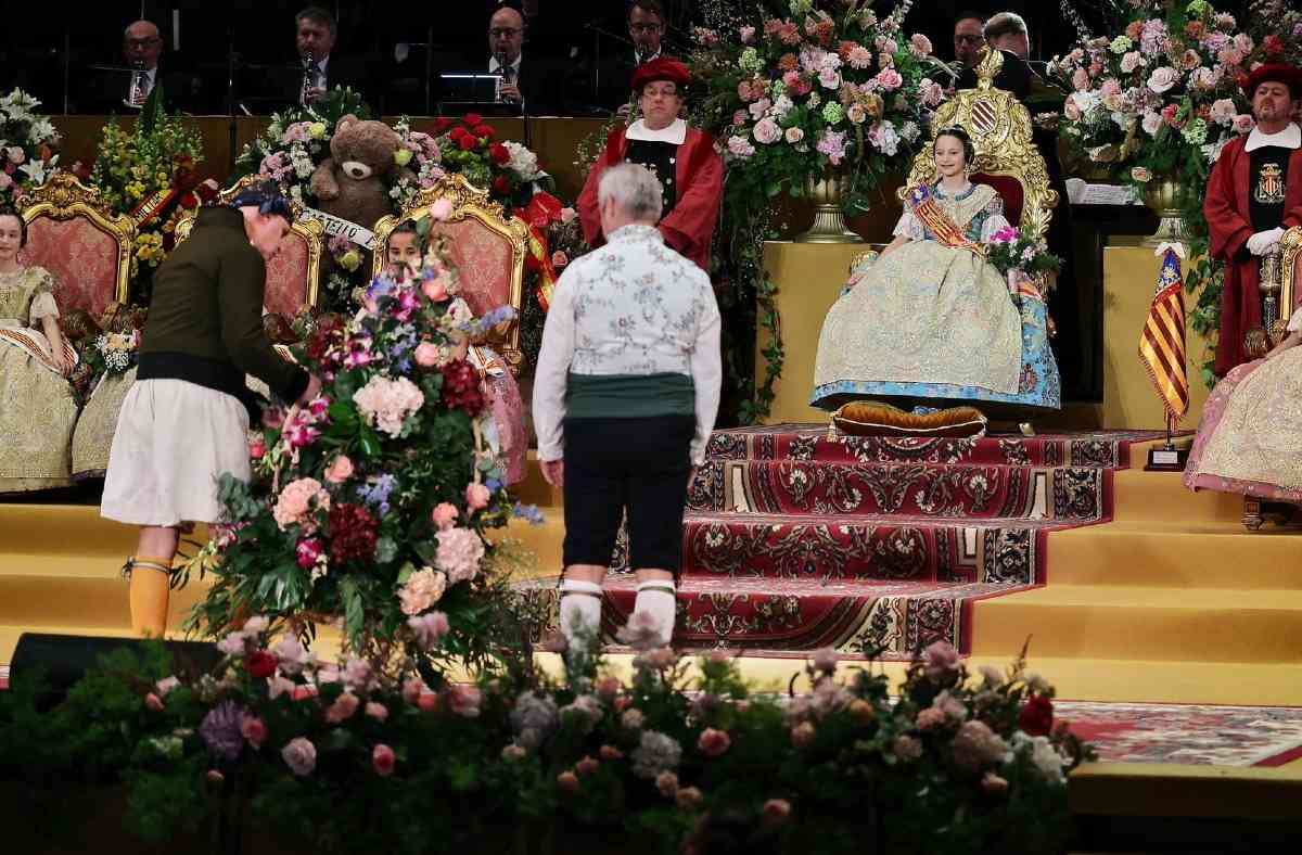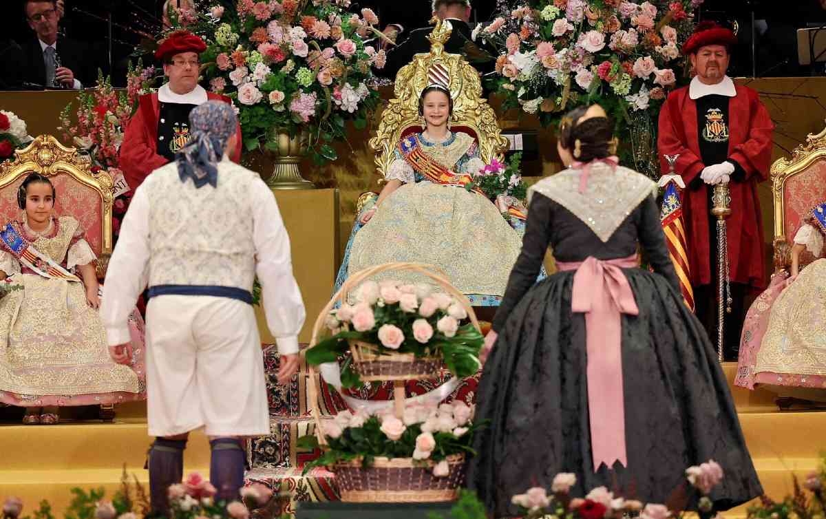 La pleitesía floral llegaba a continuación, y junto a ella, las felicitaciones de las reinas de las fiestas hermanas, Valentina Tárraga, Bellea del Fòc Infantil d’Alacant, y Ana Colón, Reina Infantil de las Fiestas de la Magdalena de Castellón.