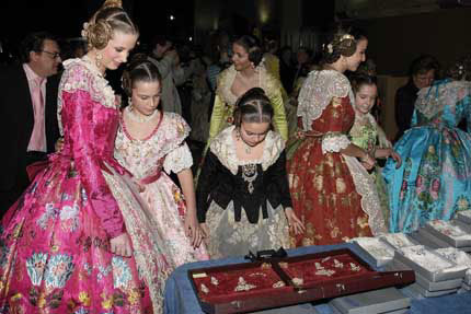 Inmaculada Escudero y Marta Reglero, junto a sus cortes de honor, pudieron contemplar todo el saber hacer y el arte destilado por telares, indumentaristas, orfebreres y zapateros, artesanos expertos que se dedican de forma especial en la confección de los elementos que las cortes y las Falleras Mayores lucirán en los días más destacados del ejercicio.