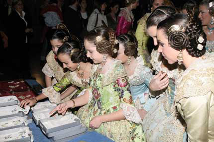 Y es que algunos de los más destacados profesionales de la indumentaria tradicional valenciana hacían la entrega oficial de sus obras, sus trajes y complementos, a las máximas representantes de las Fallas.