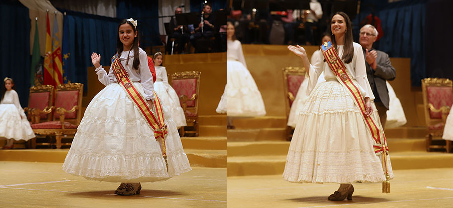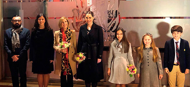 Consuelo Llobell y Carla García, juntos a sus respectivas Cortes de Honor, recorren las instalaciones del patrocinador de JCF de los centros de Pintor Sorolla y Colón.