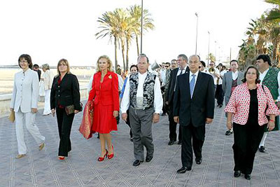 Llegados al Paseo Marítimo, la comitiva centro el acto de homenaje en la explanada, frente al monumento al actor valenciano, Antonio Ferrandis. Tras los parlamentos iniciales, Marta Reglero, junto al presidente de la Agrupación de fallas del Marítimo, José Manuel herreras, izaron la Señera y depositaron un ramo de flores en la estatua del actor valenciano, tras lo cual la concejala inició su disertación, que una vez finalizada daba paso a la interpretación del himno regional y al disparo de una mascletá por parte de la pirotecnia La Zaragozana..