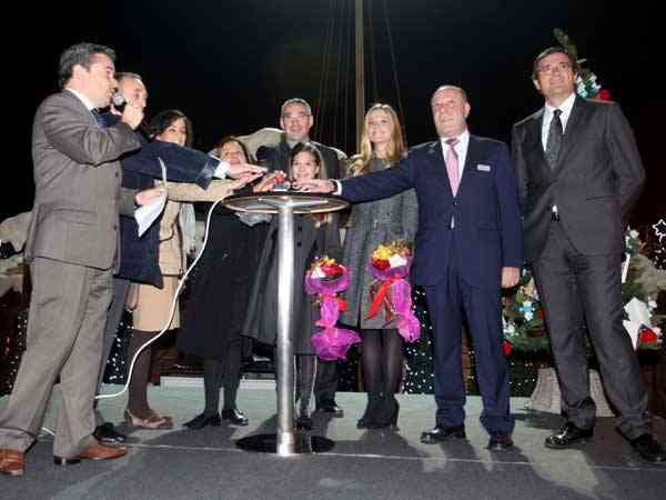 Las Falleras Mayores de Valencia recibidas por el director de Nuevo Centro, Alfredo Tell, el director de El Corte Inglés Nuevo Centro, Antonio Nogales, el director regional de Comunicación y Relaciones Externas de El Corte Inglés, Pau Pérez Rico, y el jefe de relaciones públicas, David Mazcuñán