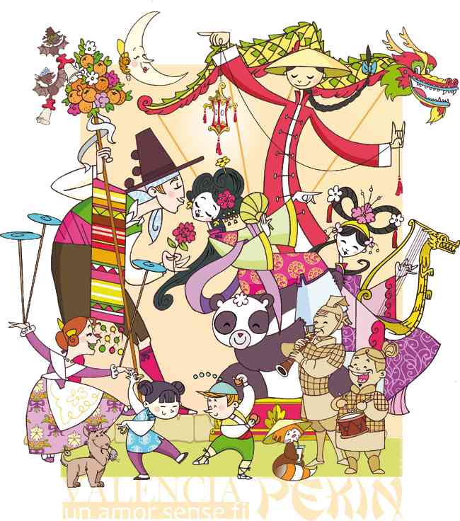 Lema: Valencia-Pekin, un amor sense fi. Artista: Ceballos y Sanabria.