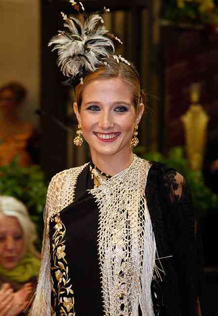 Laura Caballero Molina, Fallera Mayor de 2011 luce el tejido 2008 junto al peinador 1969 de Santos. El cancan que viste es el Tradició 1958 de la Llar del Fil. Como complemento viste el Mantón negro de Seda natural 1999.