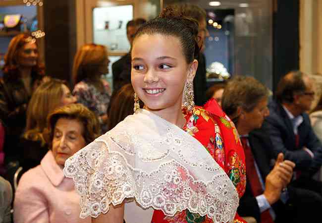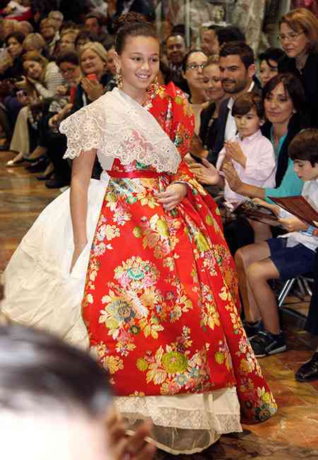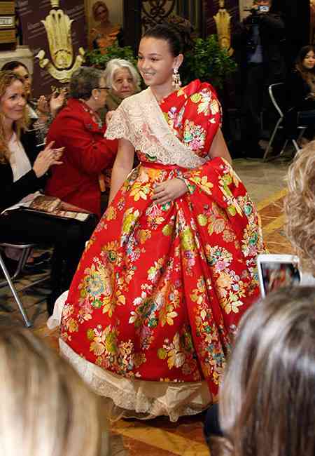 Rocío Pascual Candel, Fallera Mayor Infantil de 2012 viste con el tejido 2009 y el peinador 1968 de Adriluc. La enagua es el modelo 1955 de la llar del fil y la manteleta en seda 1966 de Hijas de Carmen Esteve. Los Zapatos son de Descans.