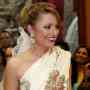 Claudia Villodre Gómez, Fallera Mayor Infantil de 2014, viste el tejido Hinojo 1947 de los telares de Sedica junto a las manteletas 1962 de Adriluc. Luce el aderezo 1984