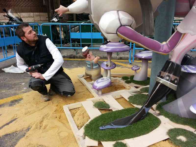 Alberto Rajadell plantando la falla infantil de Plaça de la Tenda en Benimamet