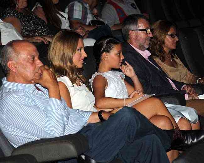 Las Falleras Mayores de Valencia y el presidente, bajando hacia la gran pantalla.