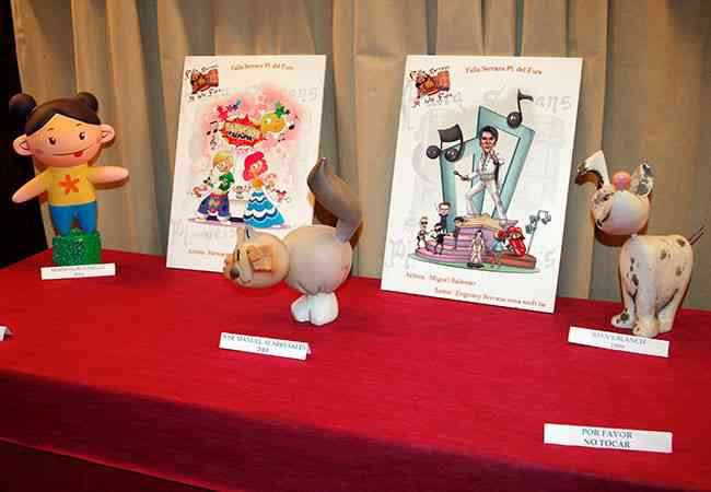Ninots de los hermanos Tomillo (2014), José Manuel Alares (2008) y Joan Blanch (1999)