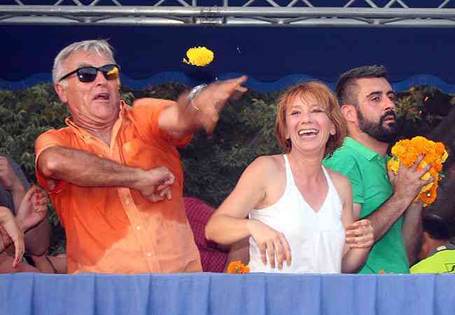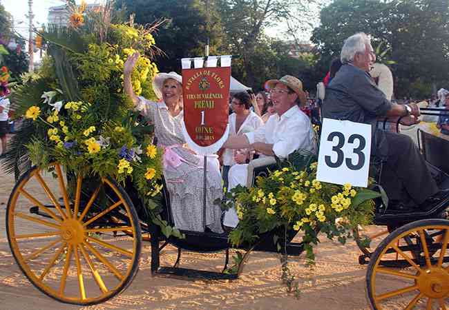 Fuera de concurso tendríamos venidas desde Burriana, a sus Falleras Mayores y cortes de honor, con una carroza realizada expresamente para la ocasión al estilo de la localidad castellonera donde el papel predomina sobre la flor natural.