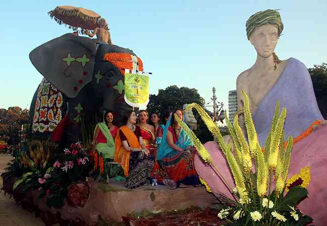Las tradicionales grupas engalanadas para la ocasión en el desfile