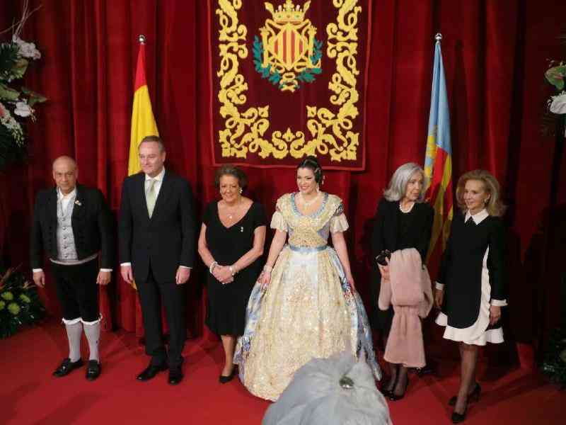 Las autoridades y la mantenedora, junto a la Fallera Mayor de Valencia.