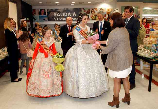 A la llegada al centro comercial las Falleras Mayores de Valencia y sus Cortes de Honor fueron agasajadas con un detalle floral.