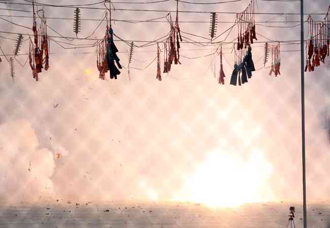 La multitud congregada de inmediato para felicitar al pirotecnico