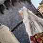 El modelo está confeccionado con patrones del S. XVIII y cerrado con cordones. Mantilla de Terno de encaje de Granada