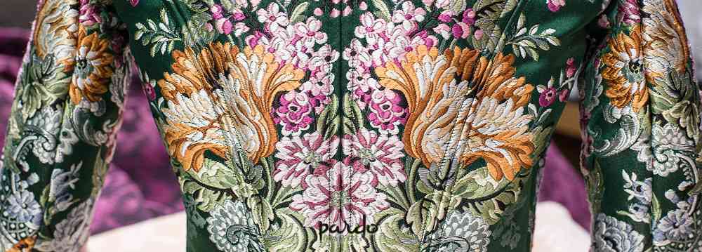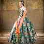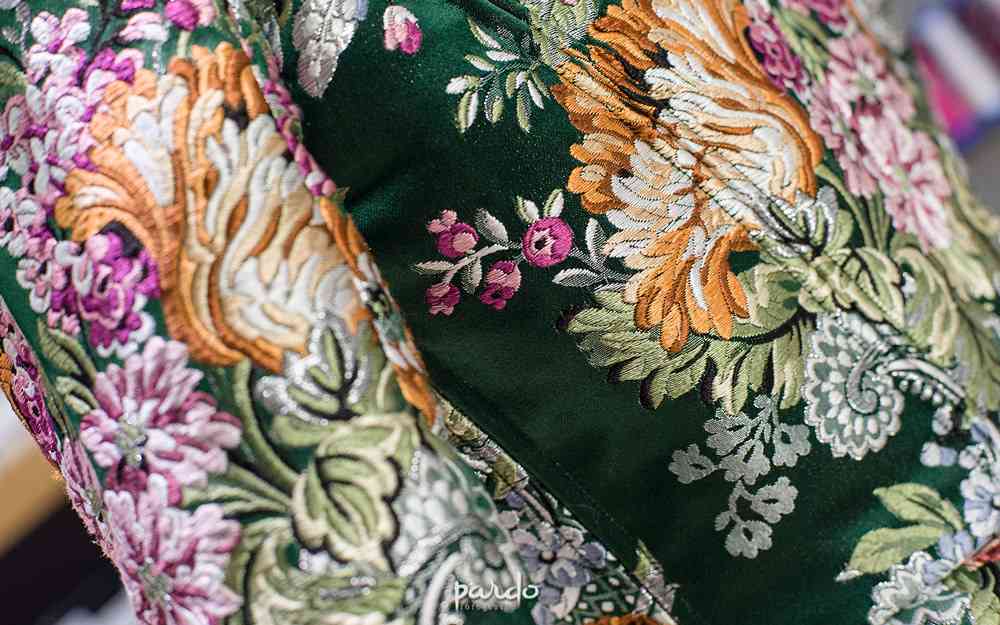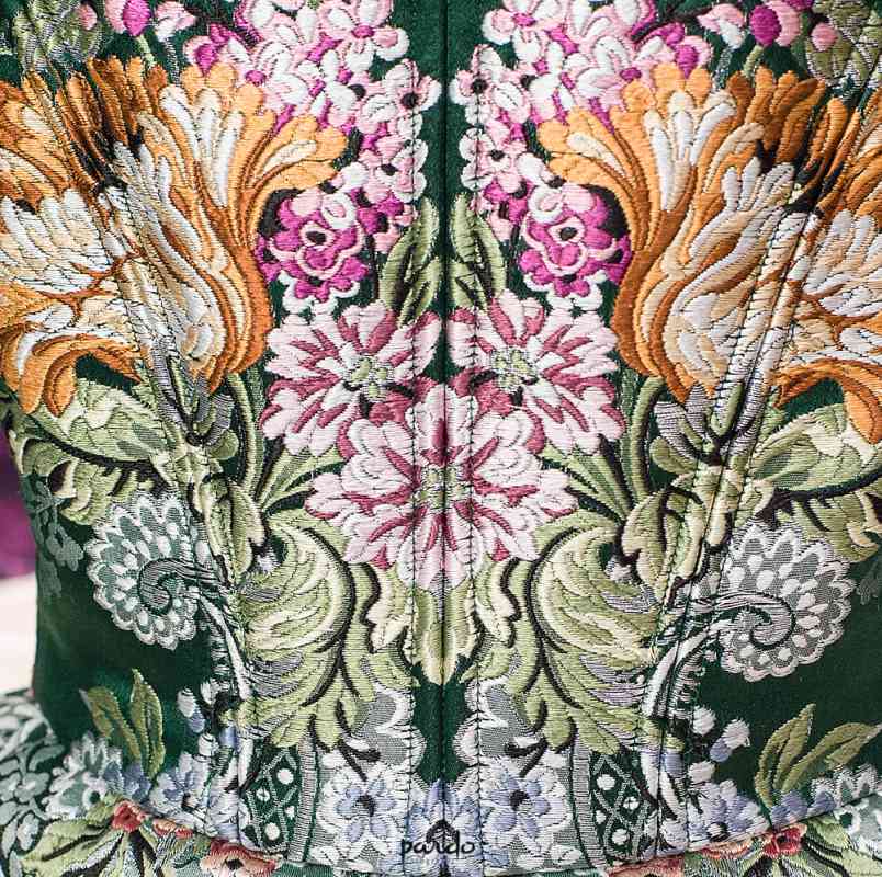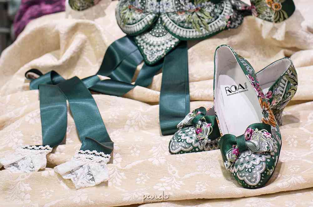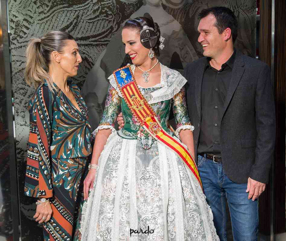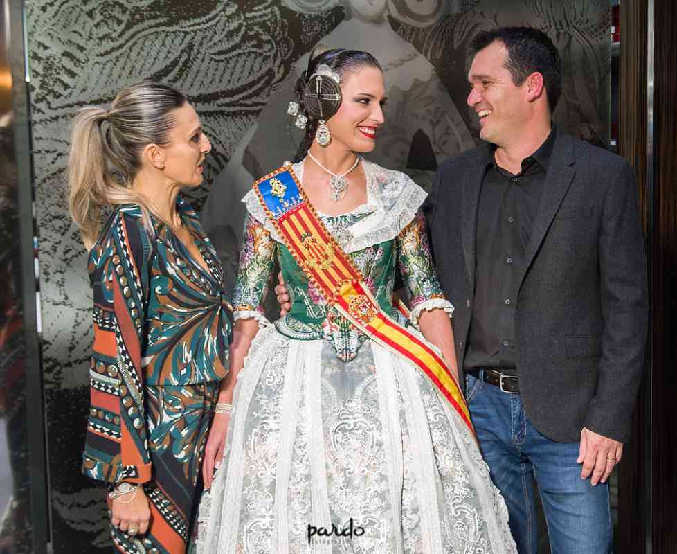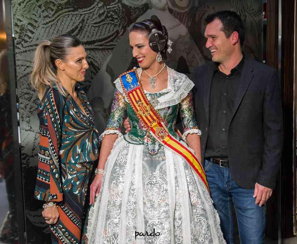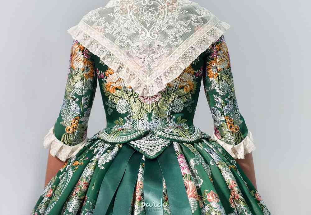 La Fallera Mayor de Valencia, Alicia Moreno Morales, lució para la Gran Gala Fallera una seda natural 100% de Vives y Marí, bautizada con el nombre de “Alicia”. El corte es un lampas, dibujo exclusivo de ROA, compuesto de 16 colores, nobleza en hilo blanco y metal plata envejecida. El estilo de dibujo es simétrico, donde destaca su ramo principal. Está trabajado como los espolines antiguos, perfilado en negro para darle profundidad a las flores, todo ello sobre un fondo verde primavera.