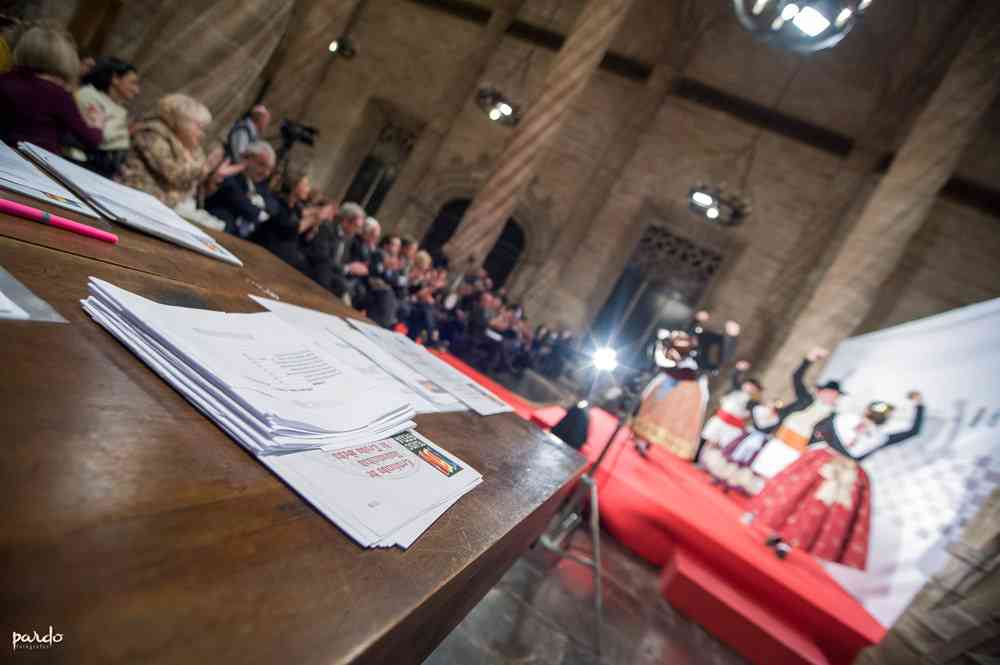 El día 11 de febrero se realizó la entrega de certificaciones de la marca Tejido Seda Valencia. Este acto, celebrado en el salón columnario de la Lonja, tuvo una importante participación de la indumentarista Amparo Fabra, que repartió 75 certificados entre sus clientas, sedas fabricadas por manos de expertos como D. Vicente Enguidanos o fábricas con gran historial como Garín, Vives y Marí o Rafael Catalá. Entre ellos también se entregaron los certificados a sedas valencianas antiguas guardadas por los clientes con sumo cariño y restauradas por Amparo Fabra.