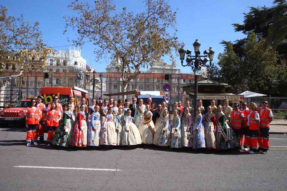 Las Falleras Mayores y Cortes de Honor han saludado a los efectivos de Cruz Roja.