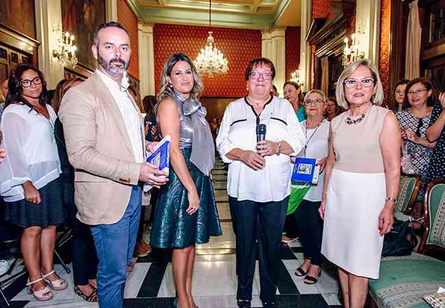 Fran Tochena y Amparo Fabra junto a la Reina de la Hermandad del Ramo de la Aguja, María Hidalgo y Mª Carmen Conejos en representación de Aspanion