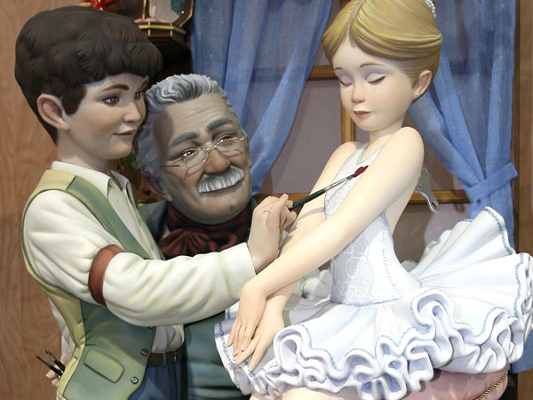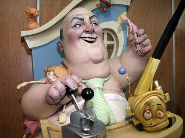 Hay que señalar que la figura que protagoniza el abuelo del ninot de Algarra es un retrato de Valentín, mano derecha del taller del artesano, que además ha sido recientemente abuelo.