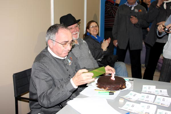 Los componentes de la delegación de Festejos realizaron un gesto de hermandad a la hora de celebrar que su compañero Enrique Gimeno se ha recuperado de la grave dolencia que se le manifestó el año pasado durante la entrega de ninots, y que requirió la presencia de los servicios sanitarios de urgencias.